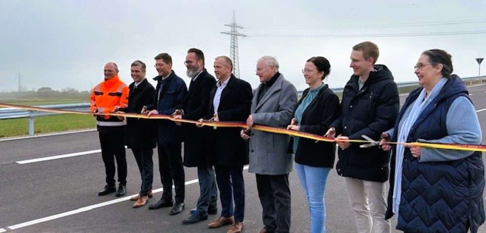 29.09.2025Zusammen mit Christian Hirte, Parlamentarischer Staatssekretär im Bundesverkehrsministerium, Nordfrieslands Landrat Florian Lorenzen und LBV.SH-Chef Frank Quirmbach gab Verkehrsminister Claus Ruhe Madsen am 13. Oktober 2025 die B-5-Anschlussstelle südlich von Husum frei. Das 25,5 Millionen Euro teure Bauwerk besteht unter anderem aus einer Brücke, die den örtlichen Verkehr künftig über die Kreisstraße K 137 führt und damit das bisher unfallträchtige Einfädeln von der Kreis- in die B 5 erleichtert. „Das ist ein riesiger Gewinn für die Sicherheit des Verkehrs mit dem positiven Nebeneffekt, dass die Wohngebiete im Süden Husums vom Güterverkehr entlastet werden“, sagte Madsen. Der Kreis und die Stadt sind mit 6,8 Millionen Euro an dem vor fünf Jahren begonnenen Bauvorhaben beteiligt.